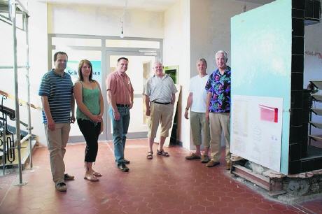 Seit einigen Jahren wird die Alte Schule nun schon saniert, Grund genug für die SPD, sich einmal vor Ort selbst ein Bild über den gegenwärtigen Stand der Sanierungsarbeiten zu verschaffen. Während die Außenarbeiten weitestgehend fertiggestellt sind und das Gebäude wieder zum alten Glanz gebracht wurde, ist im Innenbereich noch einiges zu tun. Positiv beurteilt wurde die Verlegung des Haupteingangs zum Kirchplatz hin. Dadurch ist auch die Alte Schule besser in den Kirchplatz integriert, so Ratsmitglied Ruth Schuler. Auch die Verlagerung der Bücherei in den ersten Stock sei eine gute Entscheidung gewesen, da die Bücherei dadurch stärker ins Bewusstsein gerückt sei, zudem auch besser fußläufig erreichbar sei, so Schuler. Die Entscheidung den Brunnen im Innenbereich freizustellen und damit zu einem optischen Augenfänger zu machen sei auch richtig gewesen, so Ratsmitglied Gerd Bahr. Es sei auch erfreulich, so Bahr, dass mit dem Einbau eines Fahrstuhls, dass Gebäude nun besser zugänglich und nutzbar sei. Fraktionssprecher Helmut Schott betonte, dass es wichtig sei, nach Abschluss der Sanierungen, die wegen der Finanzlage der Stadt leider immer nur Stück um Stück gemacht werde, das Gebäude auch gut von den lokalen Vereinen, aber auch von den Bürgern genutzt werde.